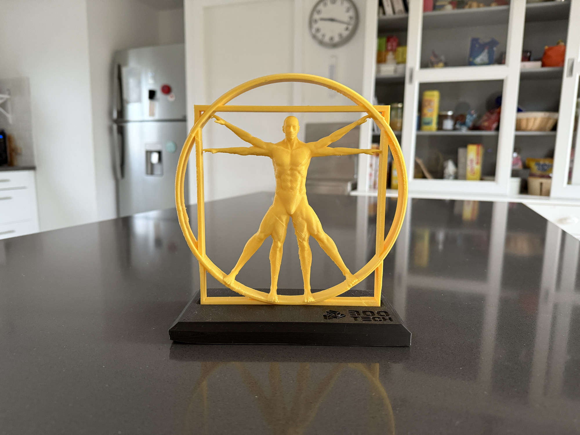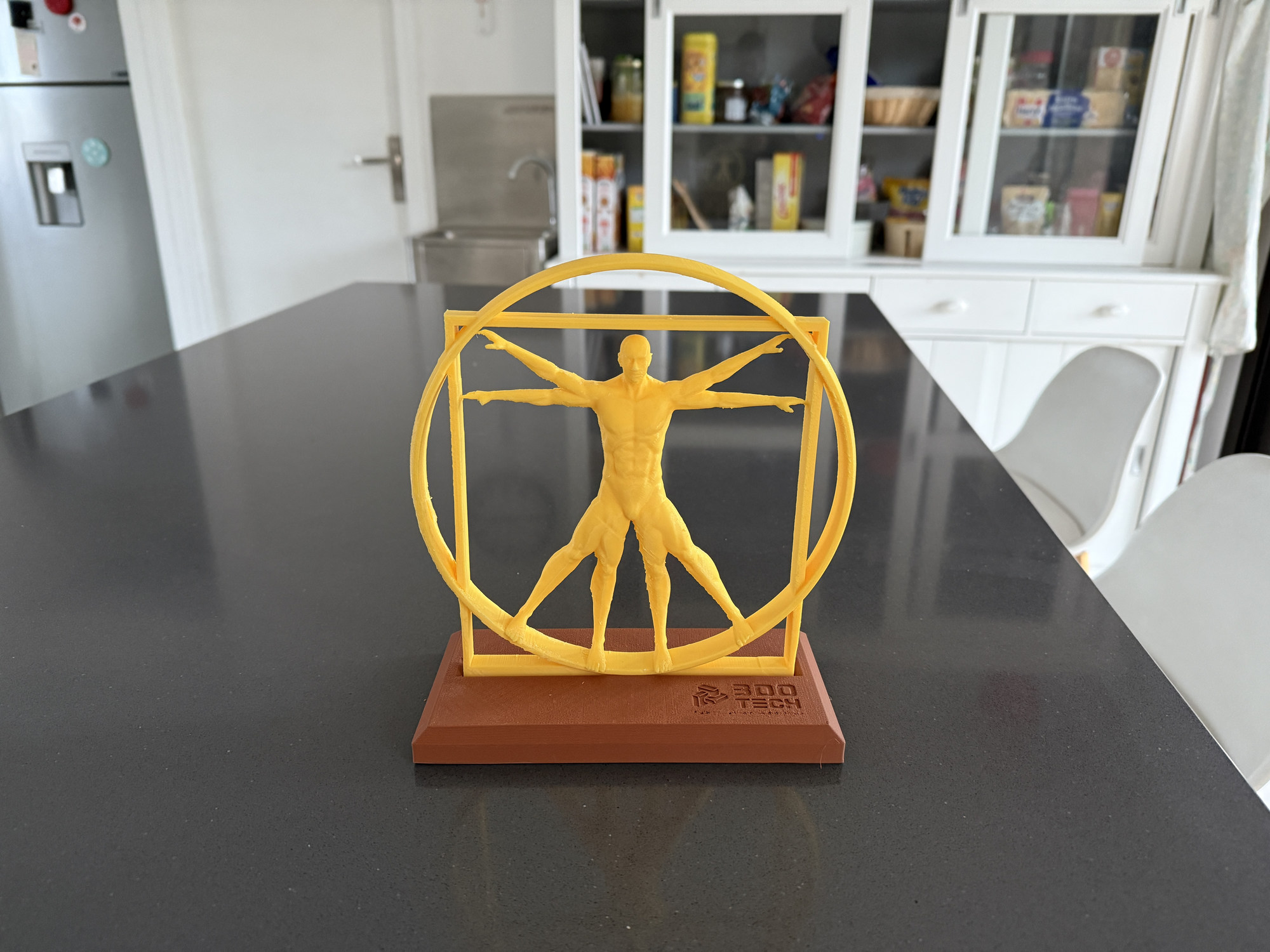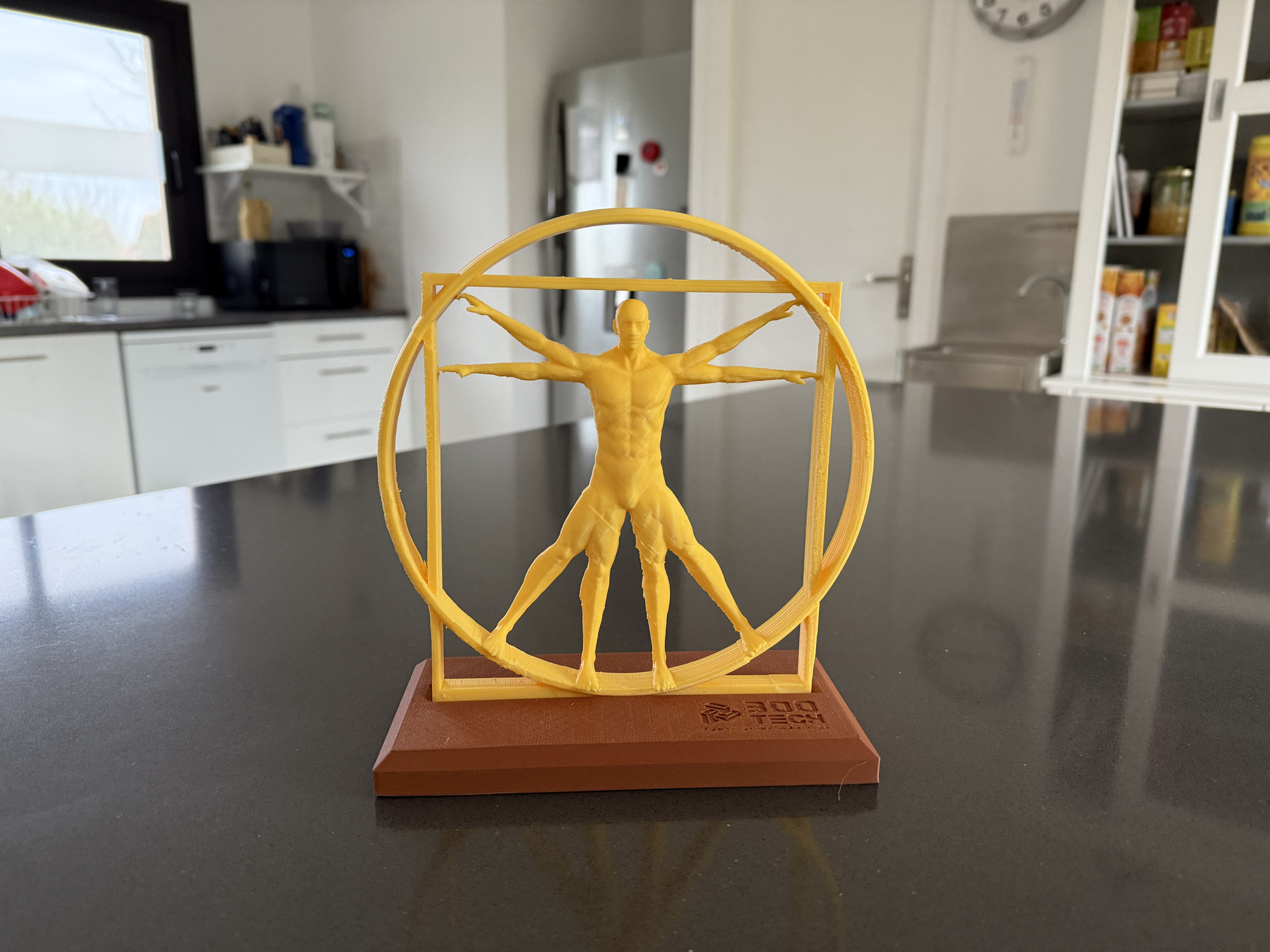 Étude des proportions idéales du corps humain réalisée vers 1490, l'Homme de Vitruve est l'une des œuvres les plus célèbres au monde. Elle incarne l'harmonie, la santé et la symétrie. Chez 3DO-TECH, nous avons transposé ce dessin bidimensionnel en une sculpture numérique 3D complexe, capturant chaque détail anatomique pour en faire un objet d'exception.