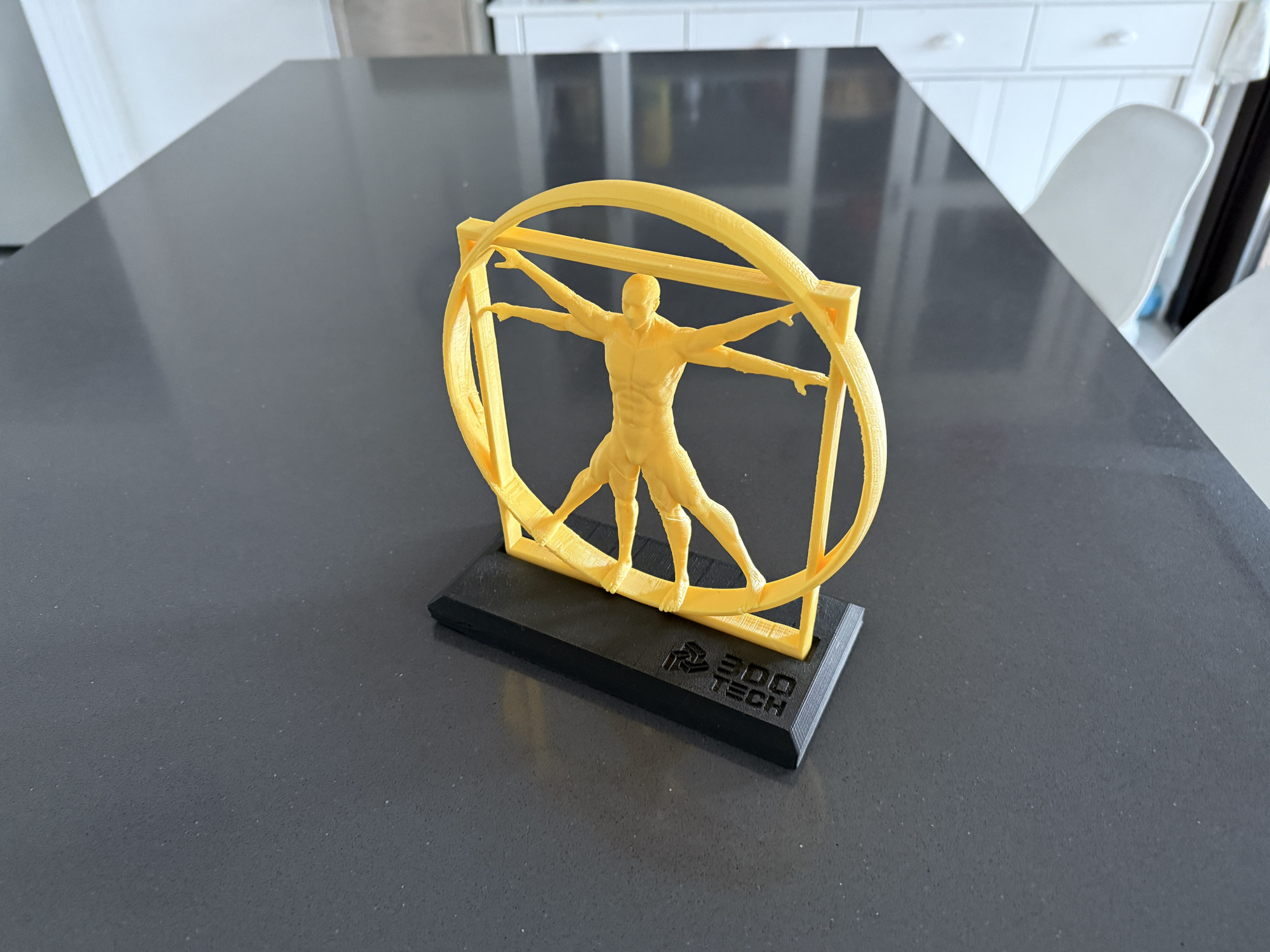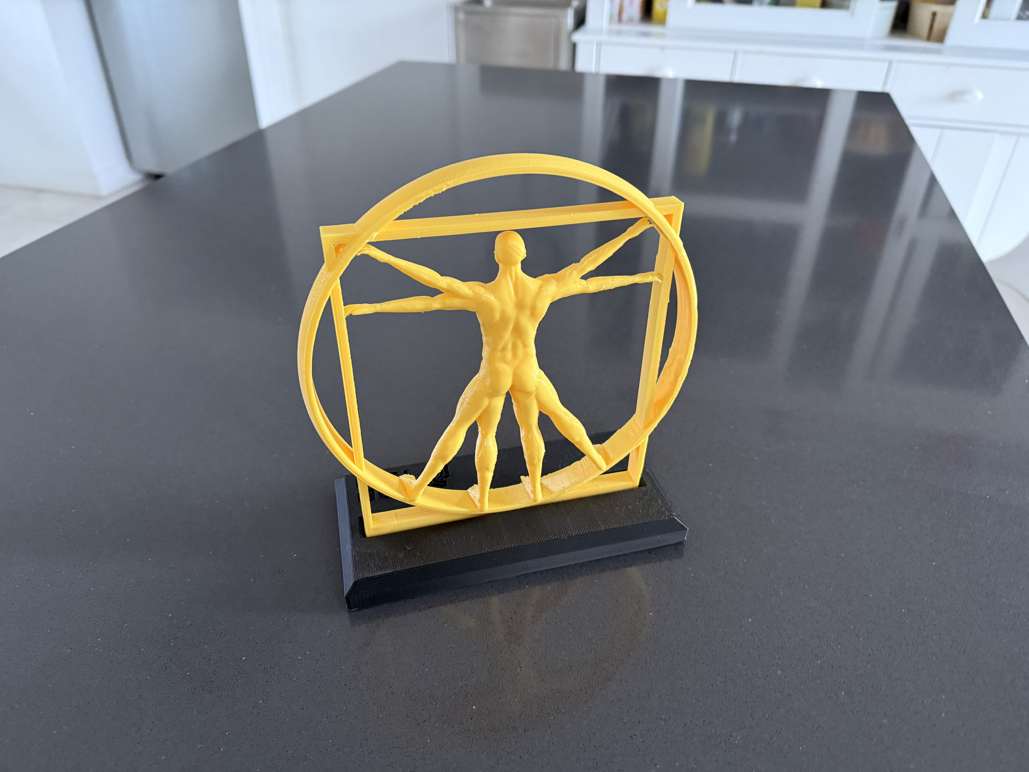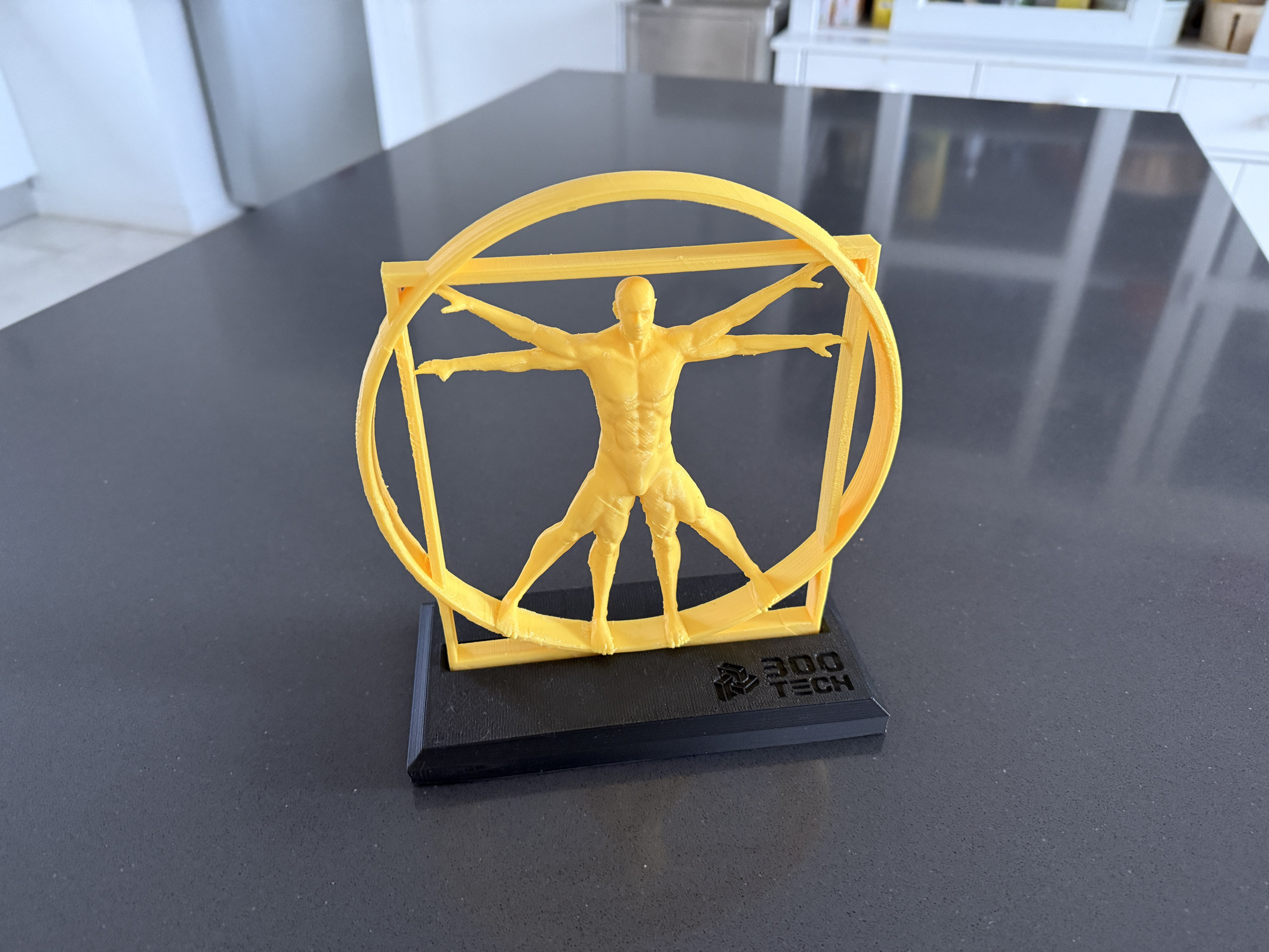 Étude des proportions idéales du corps humain réalisée vers 1490, l'Homme de Vitruve est l'une des œuvres les plus célèbres au monde. Elle incarne l'harmonie, la santé et la symétrie. Chez 3DO-TECH, nous avons transposé ce dessin bidimensionnel en une sculpture numérique 3D complexe, capturant chaque détail anatomique pour en faire un objet d'exception.